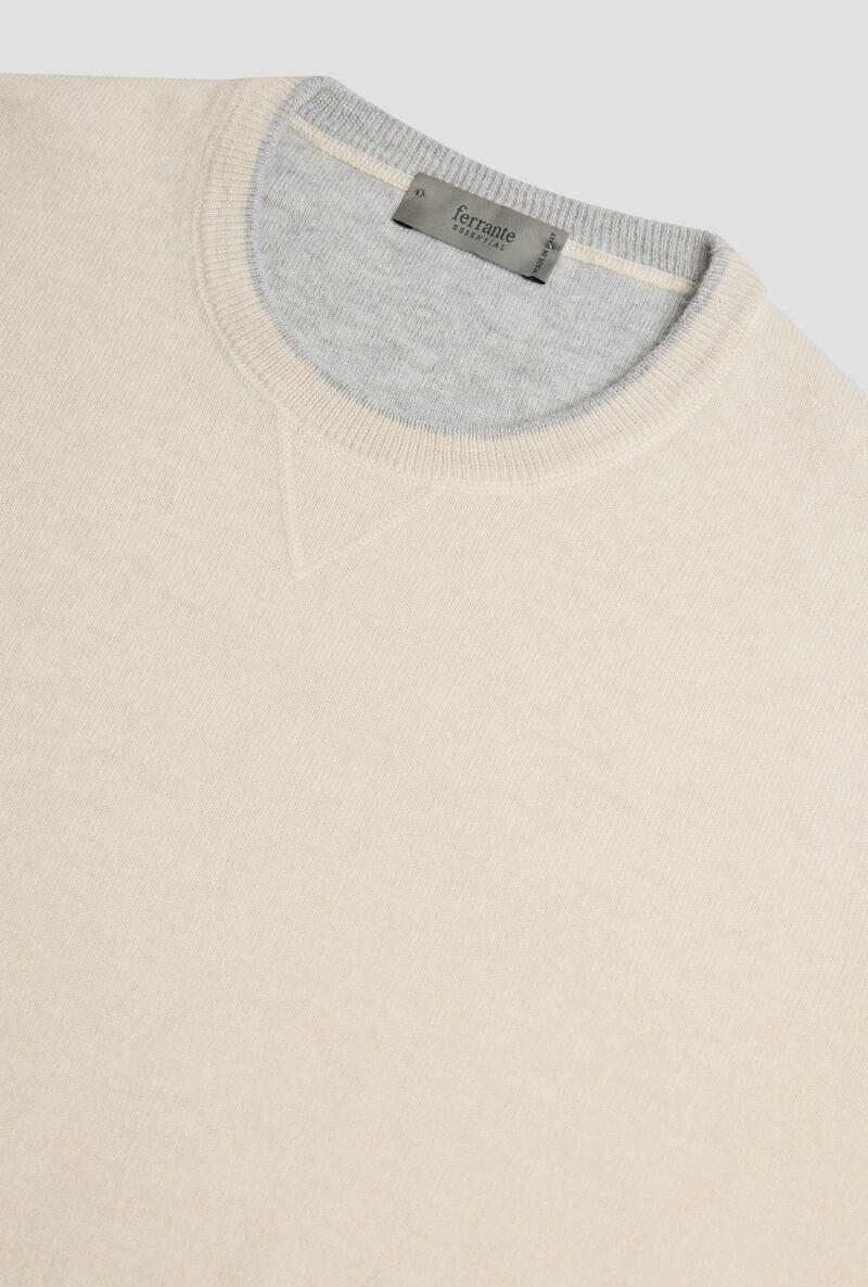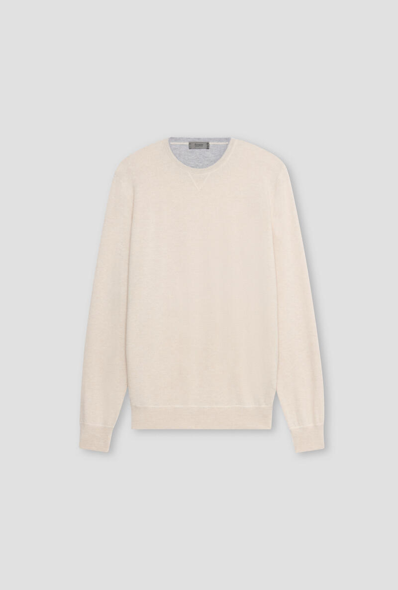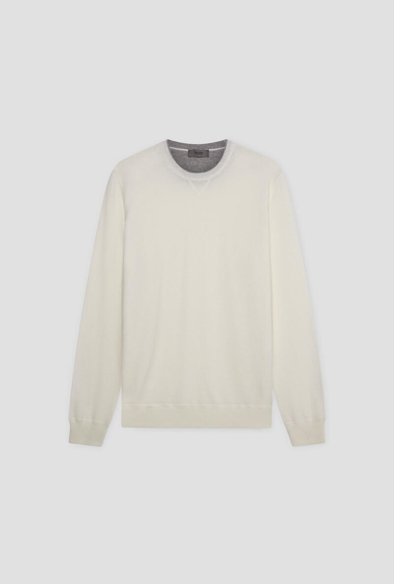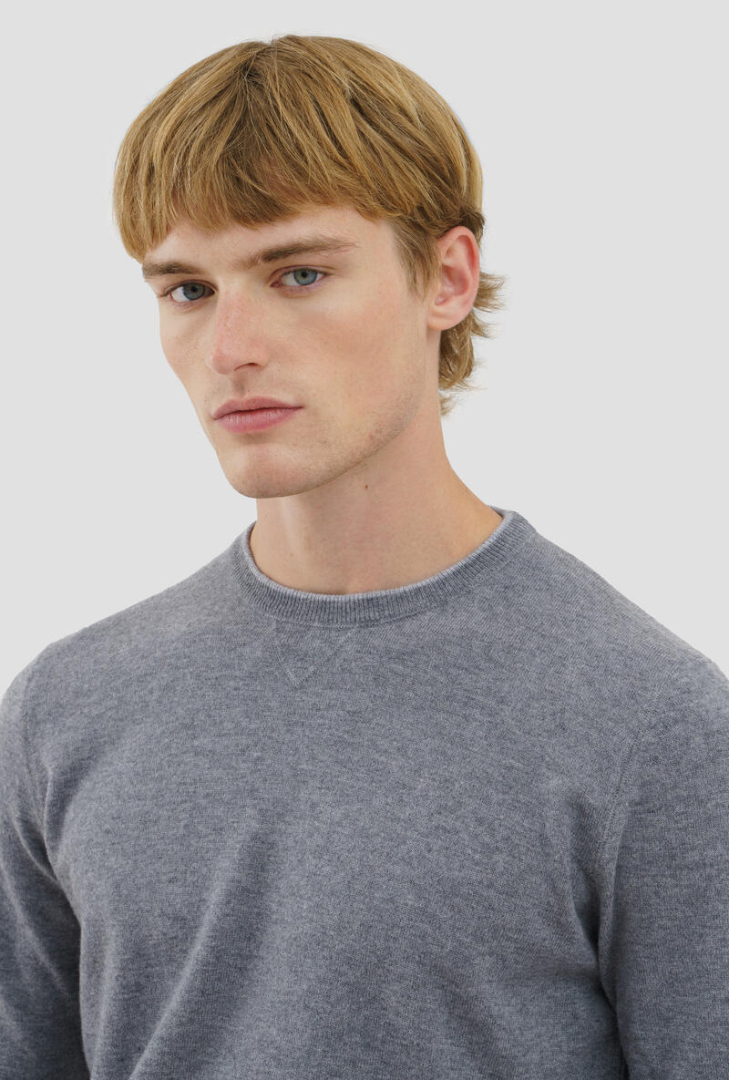 Felpa in maglia in pura lana merino extrafine.Collo e polsi a costine.Made in Italy.Il modello è alto 1,88m e indossa la taglia 50.