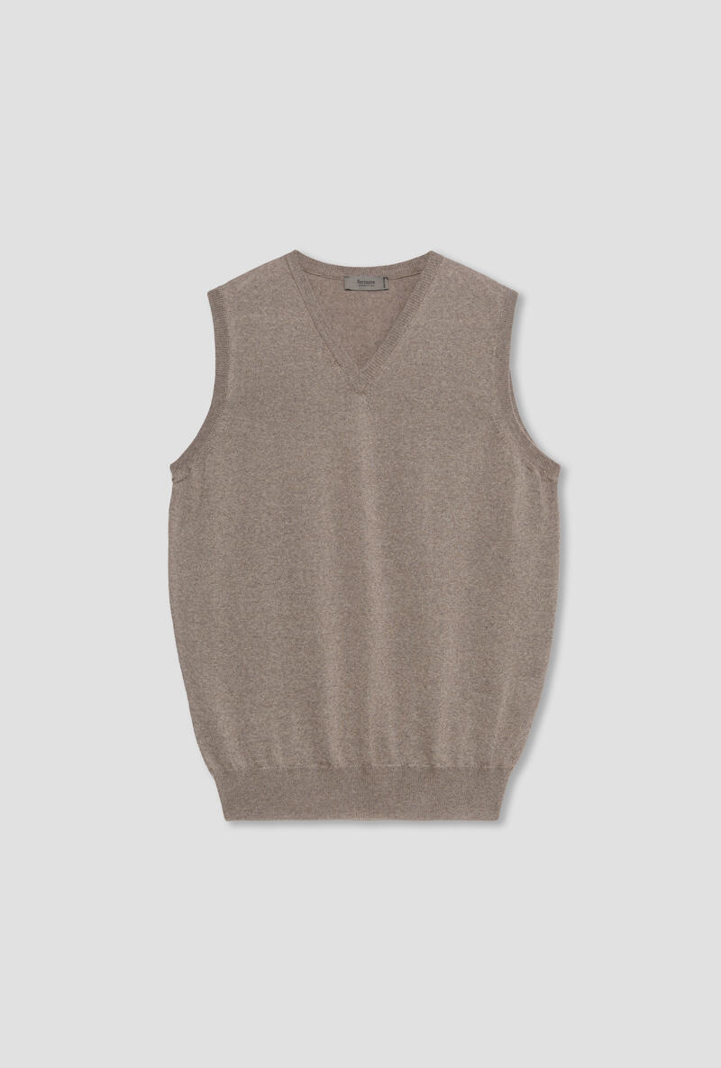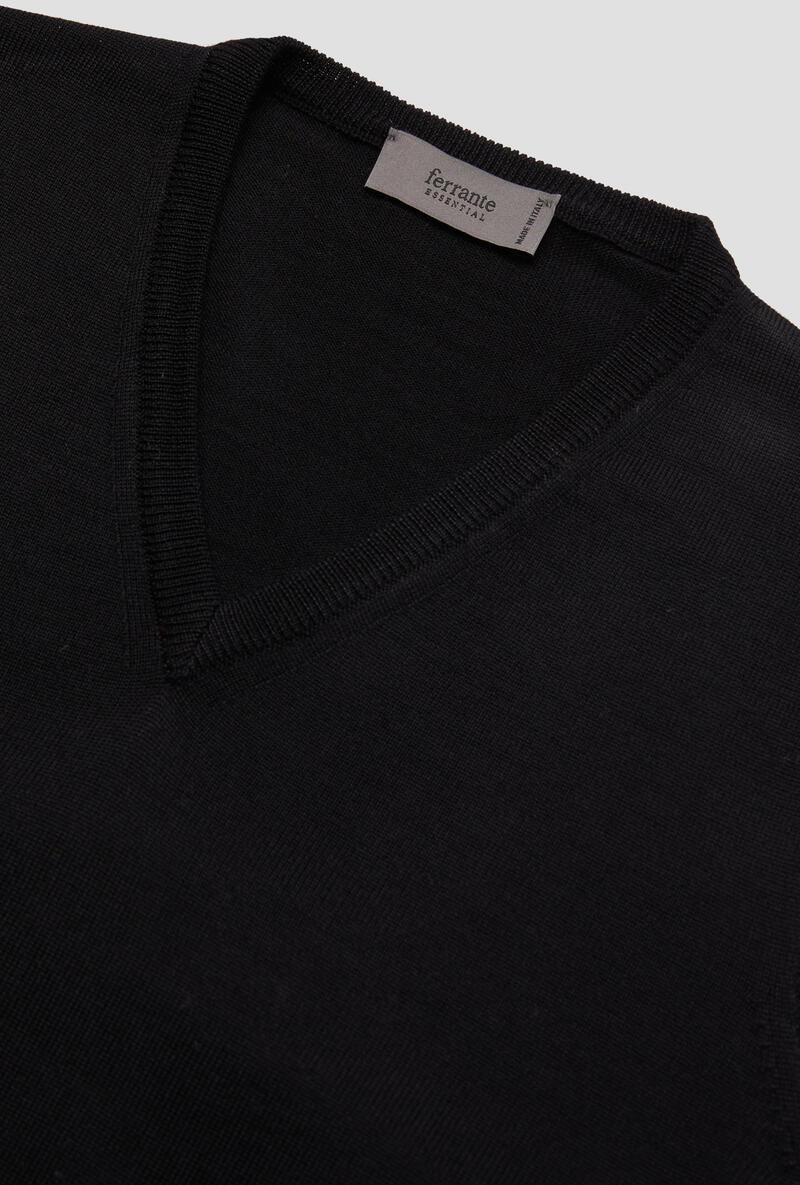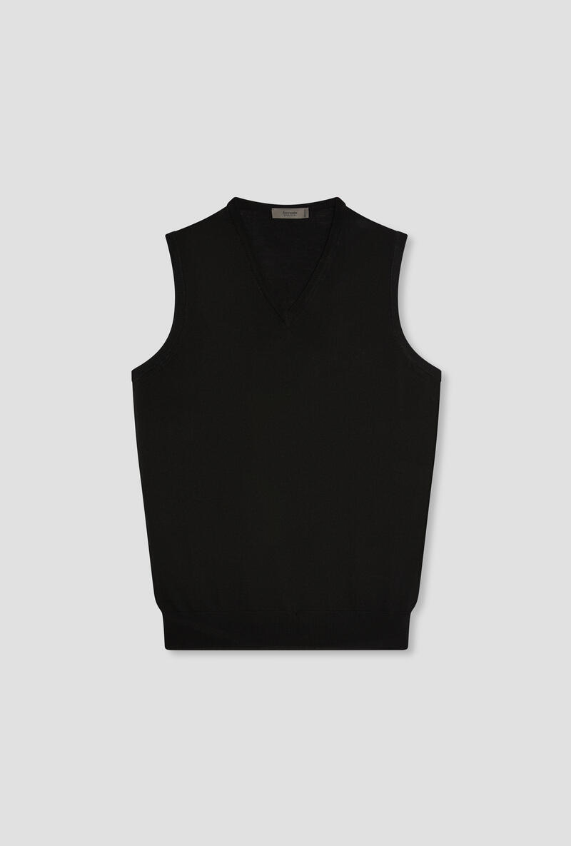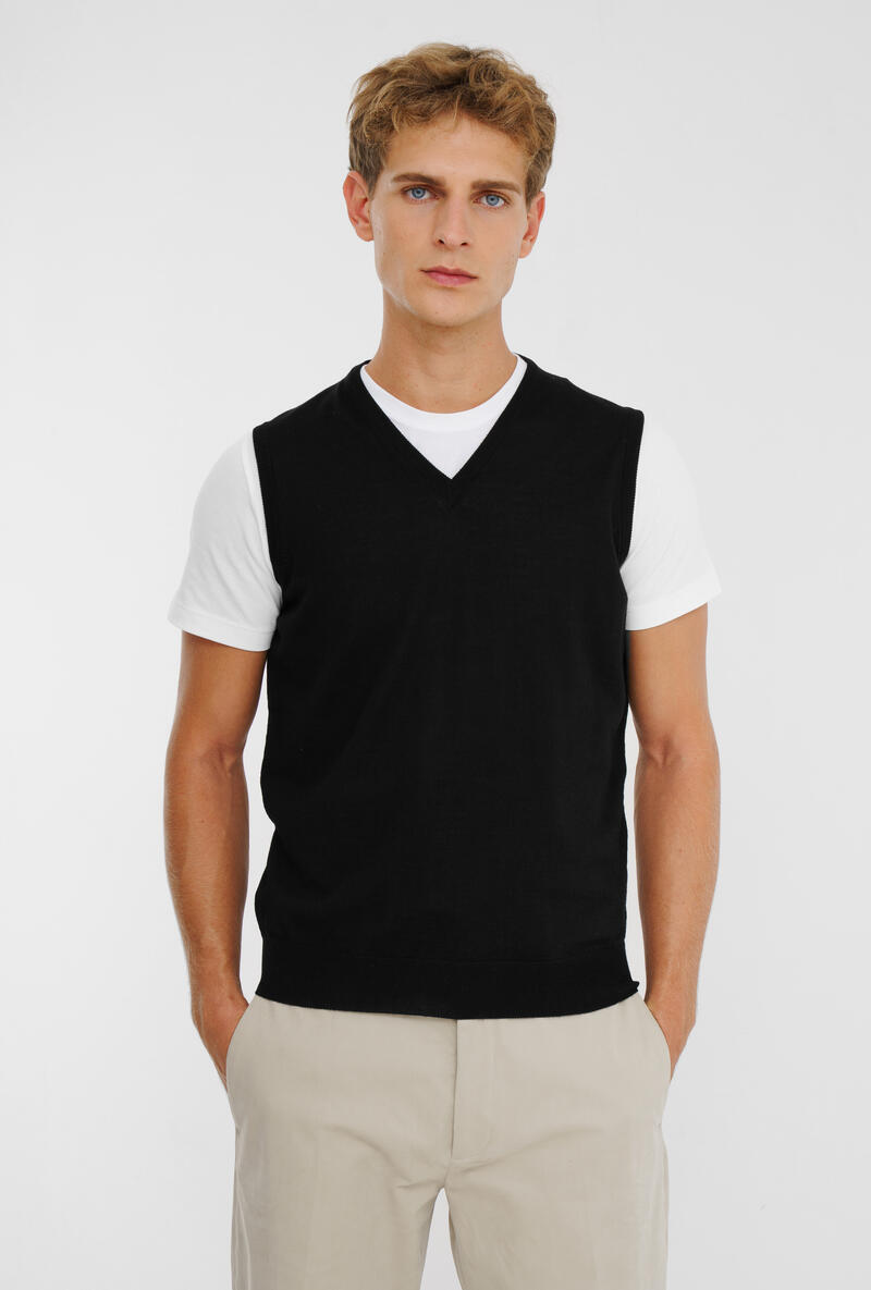 Scollo a V senza maniche.Lana Pettinata.Made in Italy.Il modello è alto 1,88m e indossa la taglia 50.