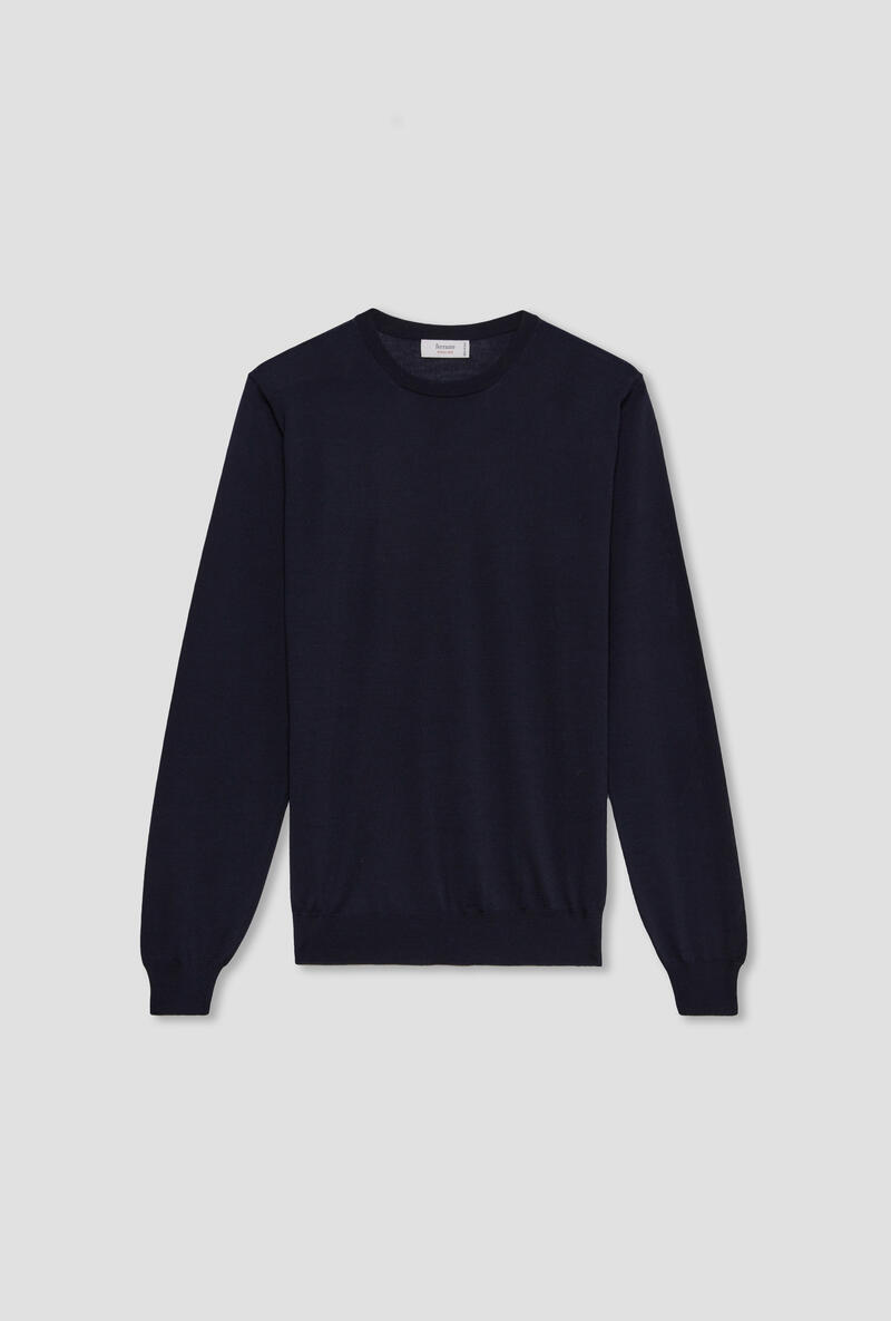 Questa maglia girocollo a manica lunga è realizzata in pura lana merino extrafine, selezionata per la sua eccezionale morbidezza, leggerezza e capacità termoregolante. La lavorazione fine e regolare valorizza la qualità del filato e garantisce una vestibilità impeccabile e confortevole. Ideale per l'uomo che cerca capi funzionali ma curati nei dettagli, questa maglia rappresenta l'equilibrio perfetto tra stile, comfort e qualità.