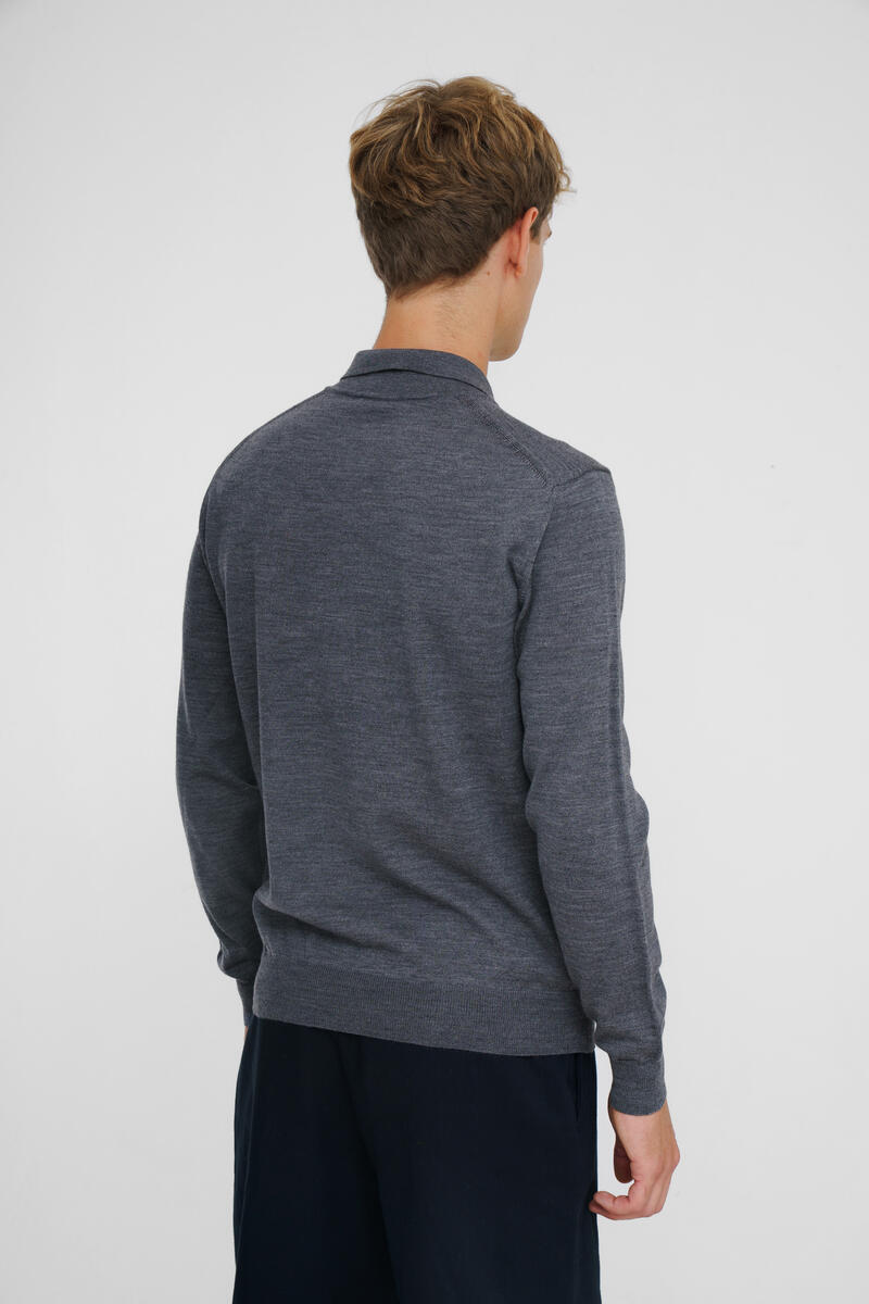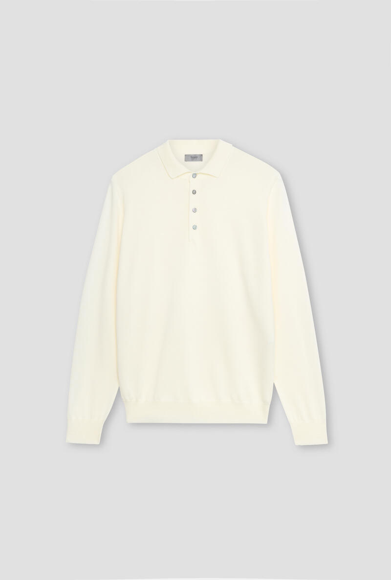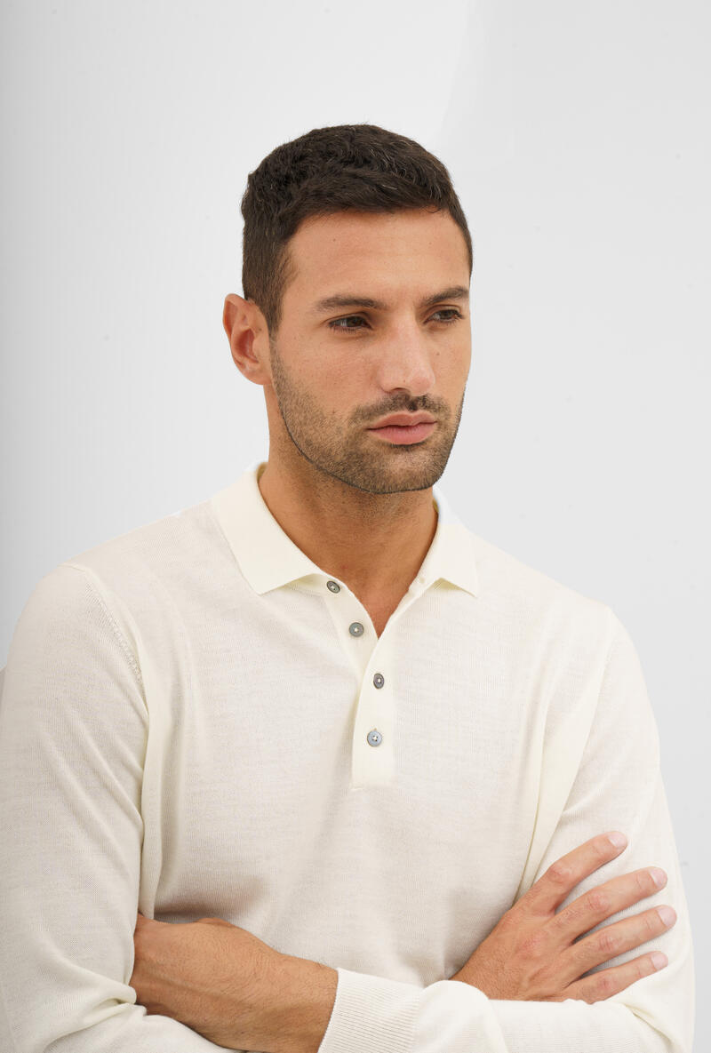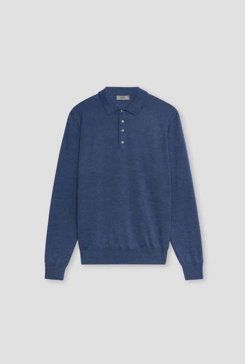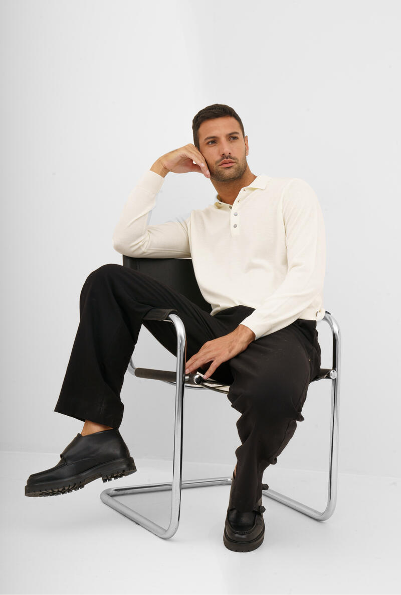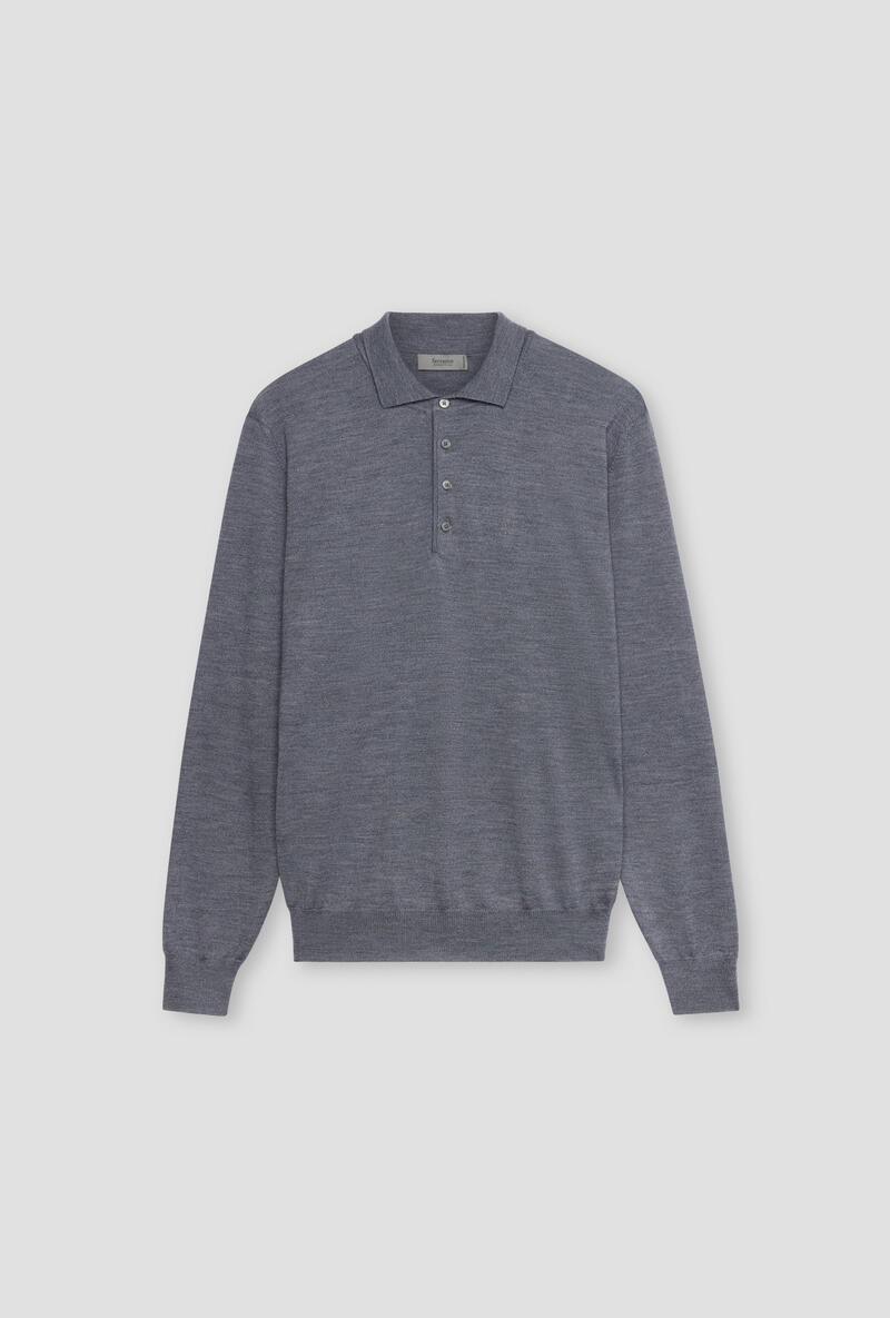 Una polo elegante e minimale, realizzata in pura lana merino extrafine per una sensazione di comfort assoluto e un look impeccabile in ogni occasione. La finezza dona una superficie liscia e compatta, ideale sia per uno stile casual curato che per abbinamenti più formali. Il colletto classico con apertura a tre bottoni aggiunge un tocco di raffinatezza senza tempo, mentre la vestibilità regolare valorizza la silhouette mantenendo la libertà di movimento.