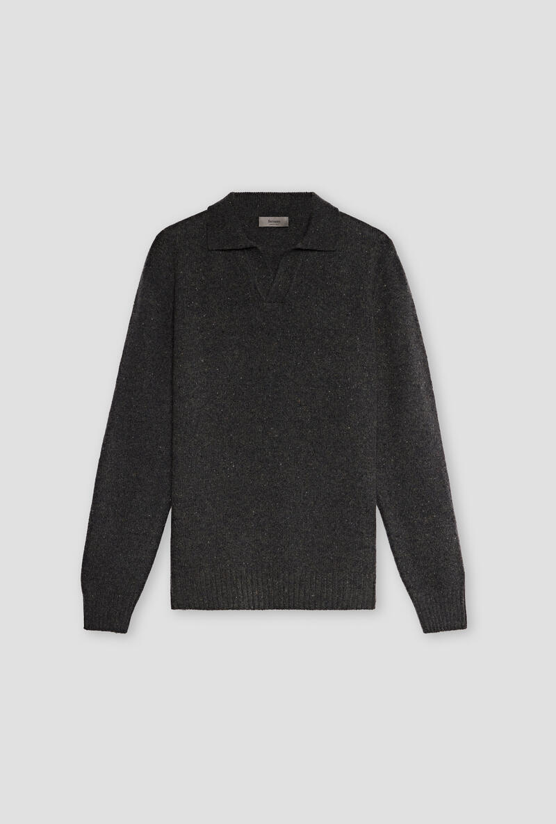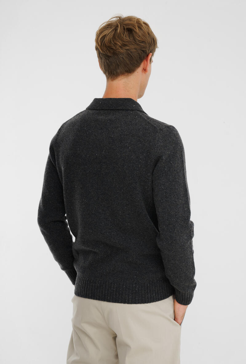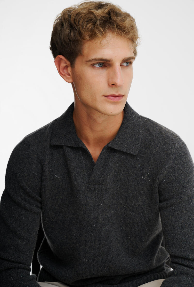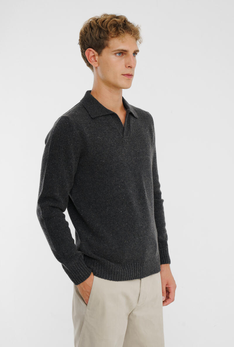 Filato in lana bottonata.Collo polo aperto senza bottoni.Vestibilità regolare, con comfort naturale.Made in Italy.Il modello è alto 1,88m e indossa la taglia 50.