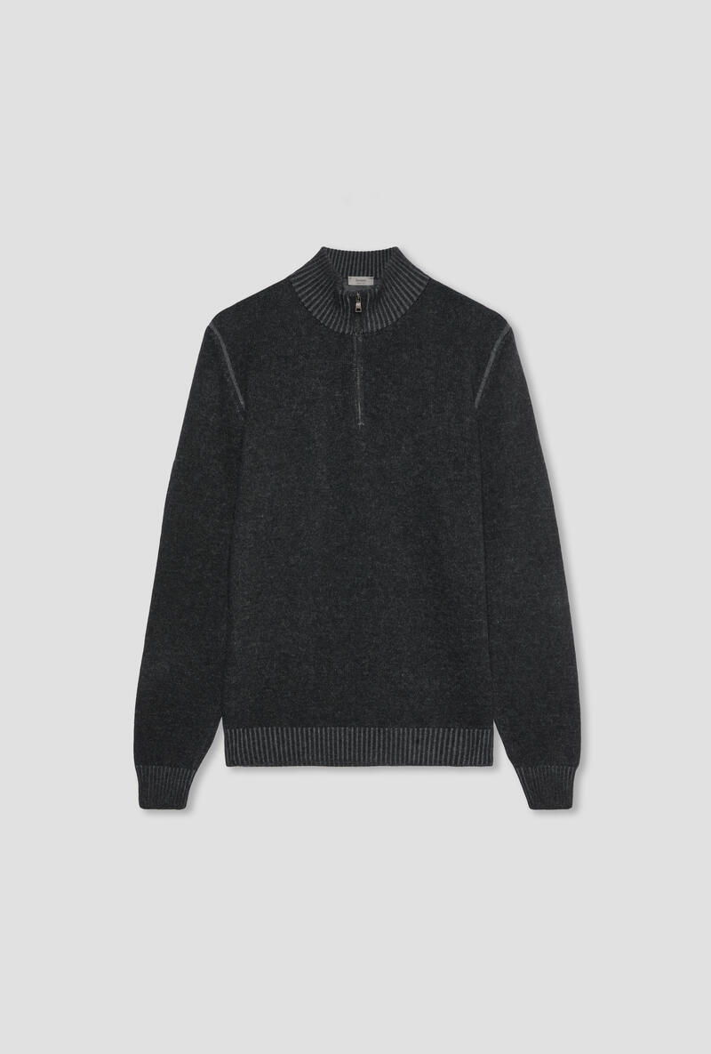 Maglia serafino dal design minimal e raffinato, realizzata in tessuto vanisé per garantire una morbidezza superiore e una piacevole lucentezza naturale. La zip frontale aggiunge praticità e versatilità, permettendo di modulare il collo a seconda dello stile desiderato. su fondo, polsi e collo. Il taglio regolare e le finiture curate assicurano comfort e vestibilità ottimale, rendendo il capo ideale sia in abbinamento a look casual sia sotto giacche e blazer per un’eleganza discreta.