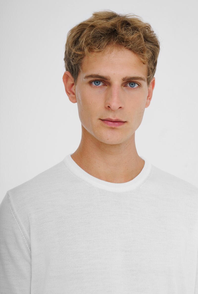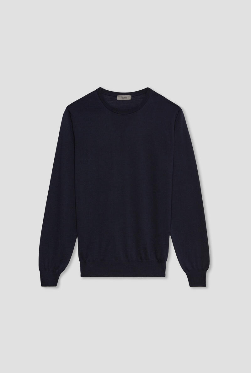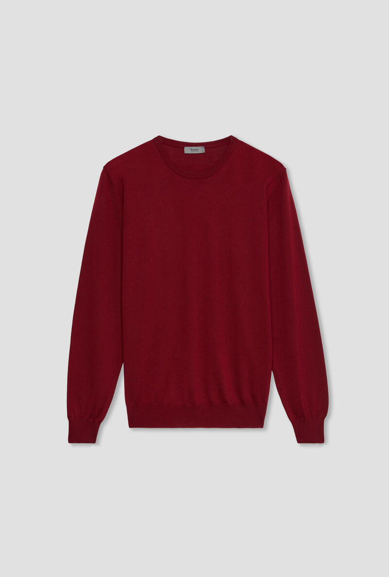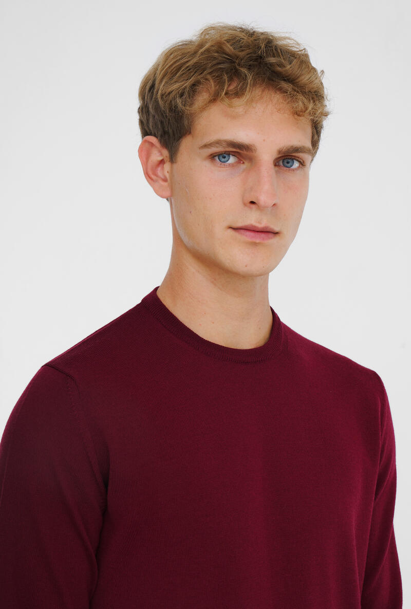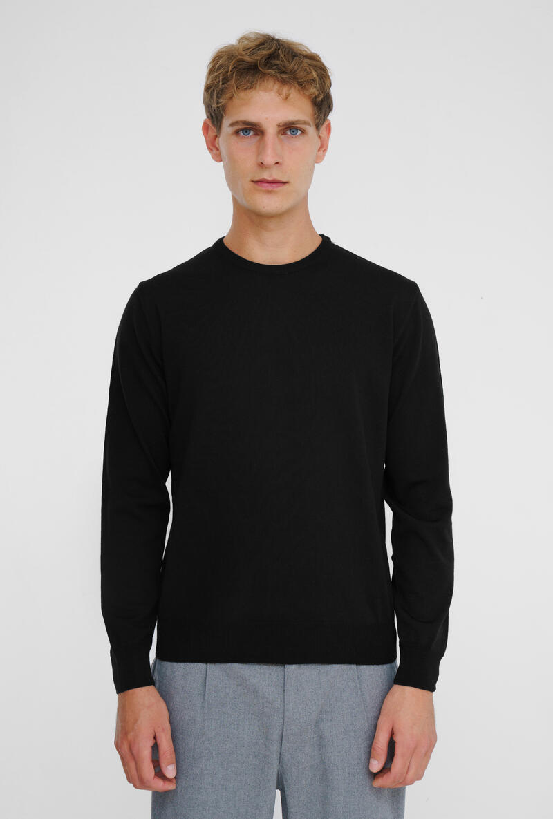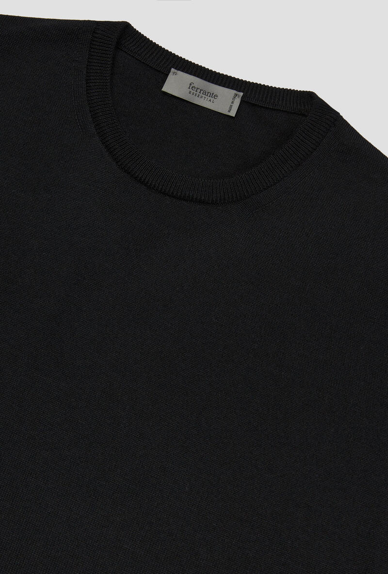 Girocollo in pura lana merino extrafine.Bordi a costina.Made in Italy.Il modello è alto 1,88m e indossa la taglia 50.