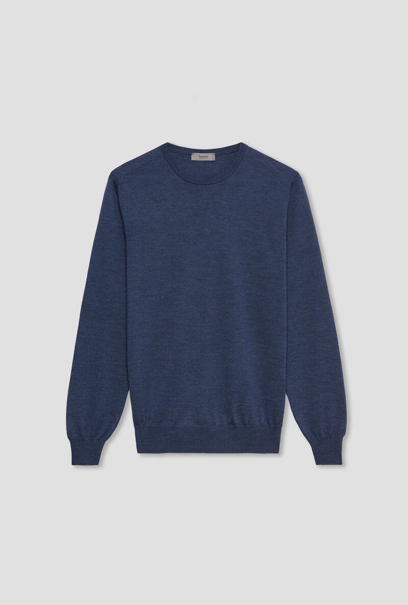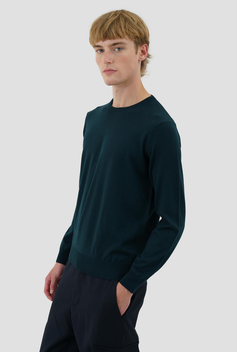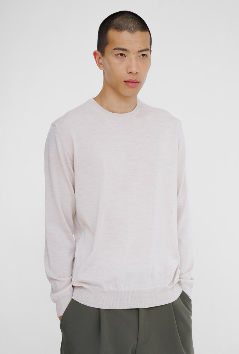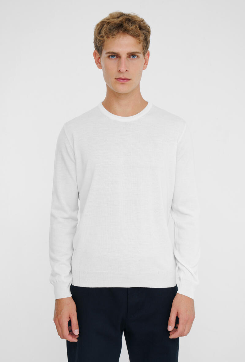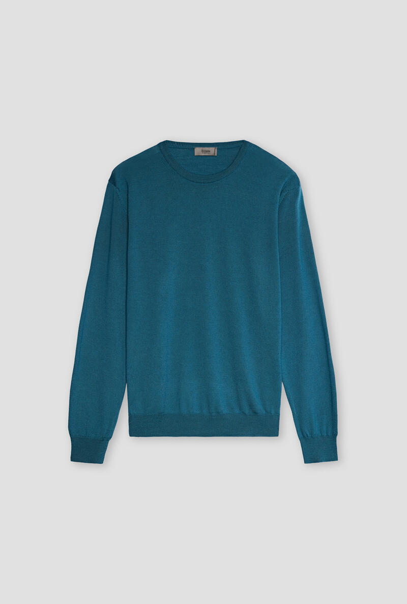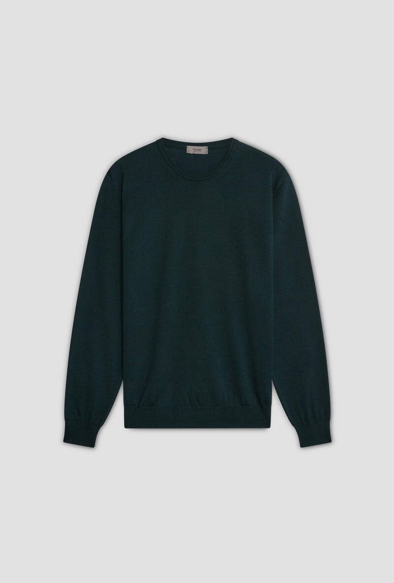 Girocollo in pura lana merino extrafine.Bordi a costina.Made in Italy.Il modello è alto 1,88m e indossa la taglia 50.