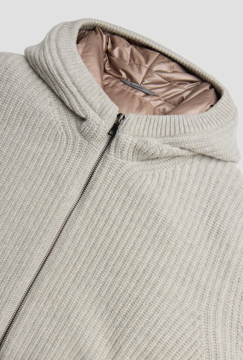 Lavorazione a costa ingleseInterno trapuntato in tessuto tecnicoCappuccio integratoMade in ItalyIl modello è alto 1,88m e indossa la taglia 50.