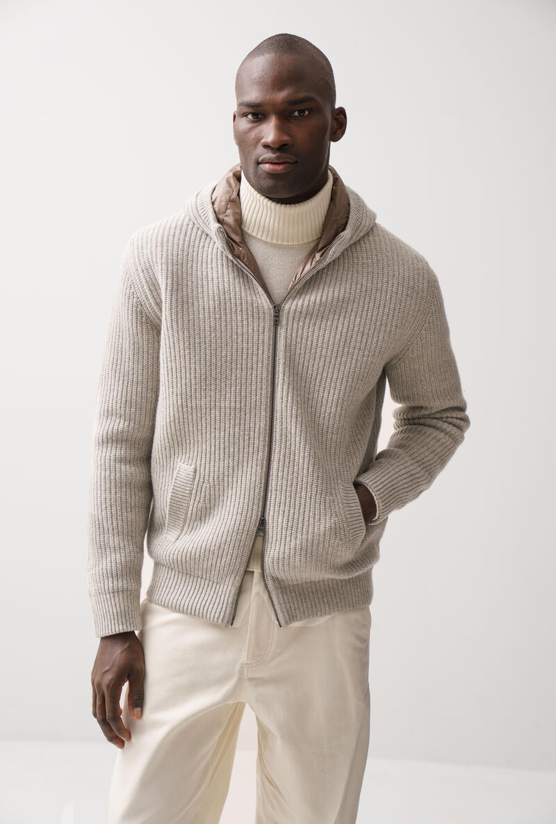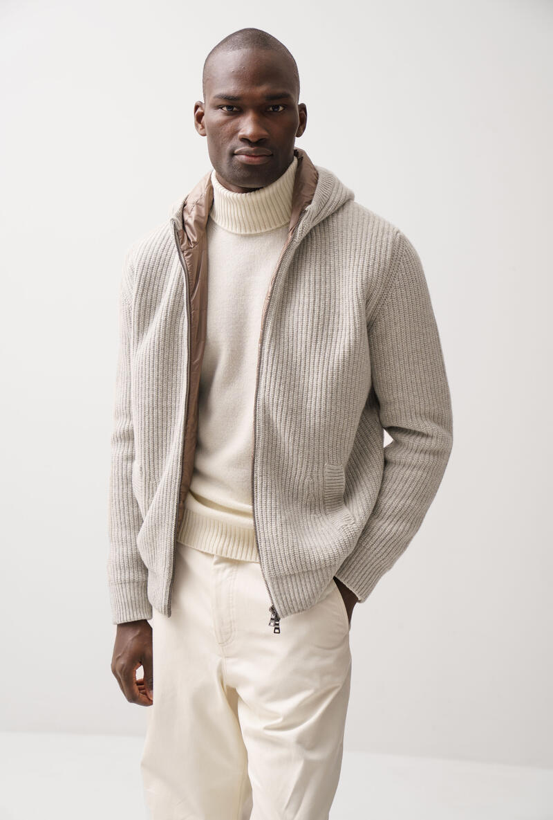 Felpa con zip dallo stile urbano, perfetta per affrontare il freddo con comfort e raffinatezza. La maglia in lana e la lavorazione a costa inglese donano struttura e calore. L’imbottitura interna trapuntata assicura protezione termica senza appesantire la silhouette. Il cappuccio avvolgente e la doppia zip completano il look con funzionalità. L’imbottitura interna trapuntata assicura protezione termica senza appesantire la silhouette. Il cappuccio avvolgente e la doppia zip completano il look con funzionalità.