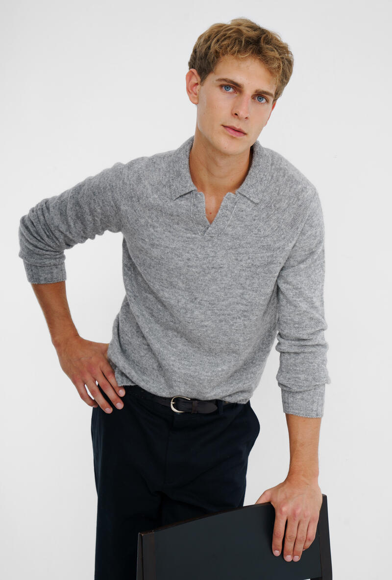 Un capo iconico reinterpretato in chiave sofisticata e confortevole. Questa polo in maglia si distingue per il suo design essenziale, privo di bottoni,che valorizza il portamento senza rinunciare alla sobrietà. La costruzione con maniche raglan sottolinea l'attitudine rilassata del modello, favorendo una vestibilità naturalmente fluida e un comfort superiore nei movimenti. Facile da indossare in contesti casual ma anche perfetto sotto una giacca invernale per un effetto raffinato e contemporaneo.